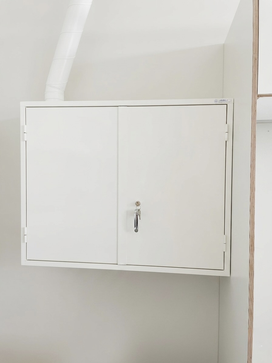 JiWas Fire Isolated Chemical Cabinets have movable shelves with folded edges and sealed corners to prevent runoff in the event of spillage. The fire isolated cabinets can also be be fitted with a collection trough for storage of bigger containers. The cabinets are fitted with a ventilation duct with suction points that ventilates the space between the shelves. Exhaust attatchment on top of the cabinet (Ø 100 mm)