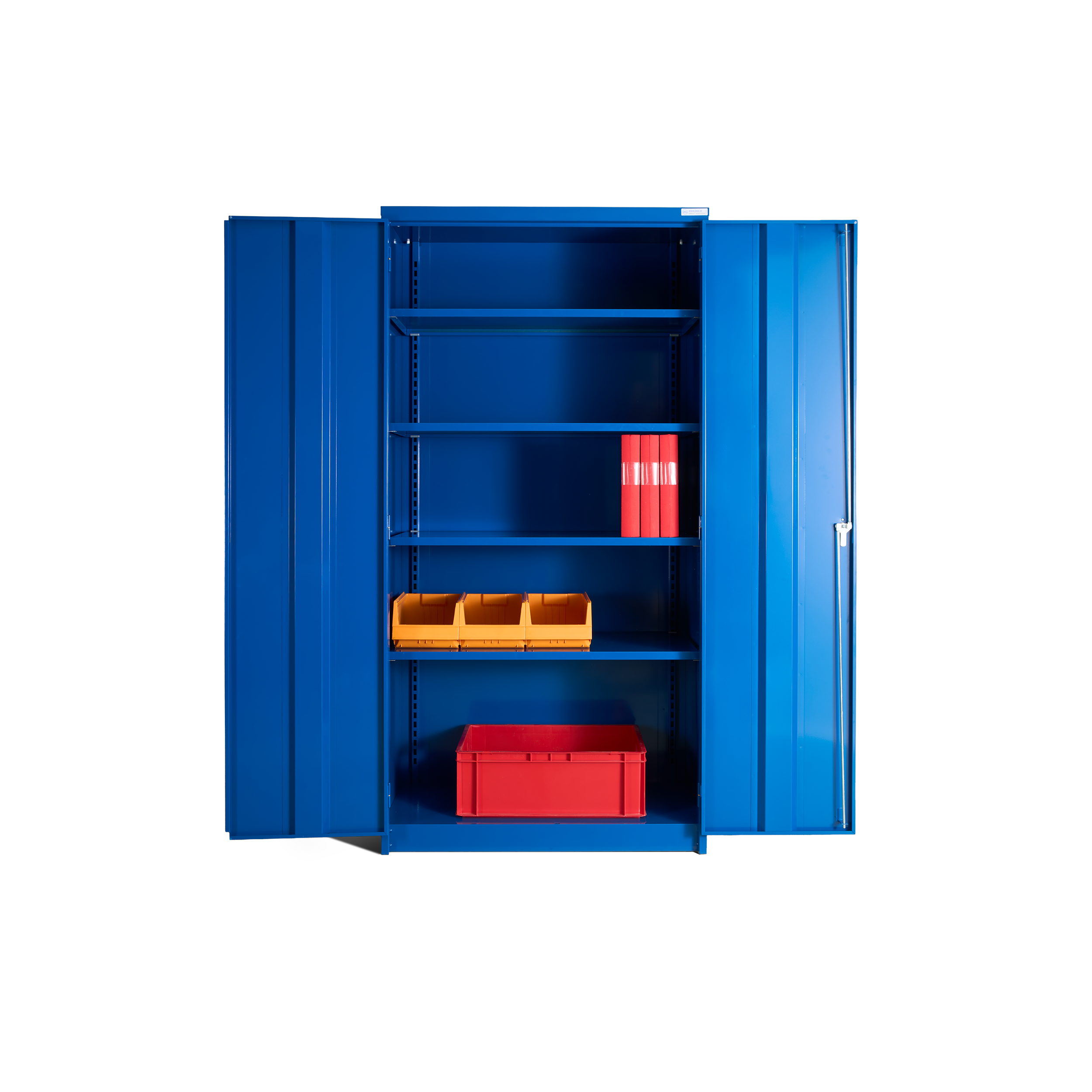 Ett kraftigt verkstadsskåp som klarar tung belastning. Plåtskåpet kan inredas med hyllor, utdragbara hyllor och lådor, verkstadspaneler och upphängningslist för plastbackar.