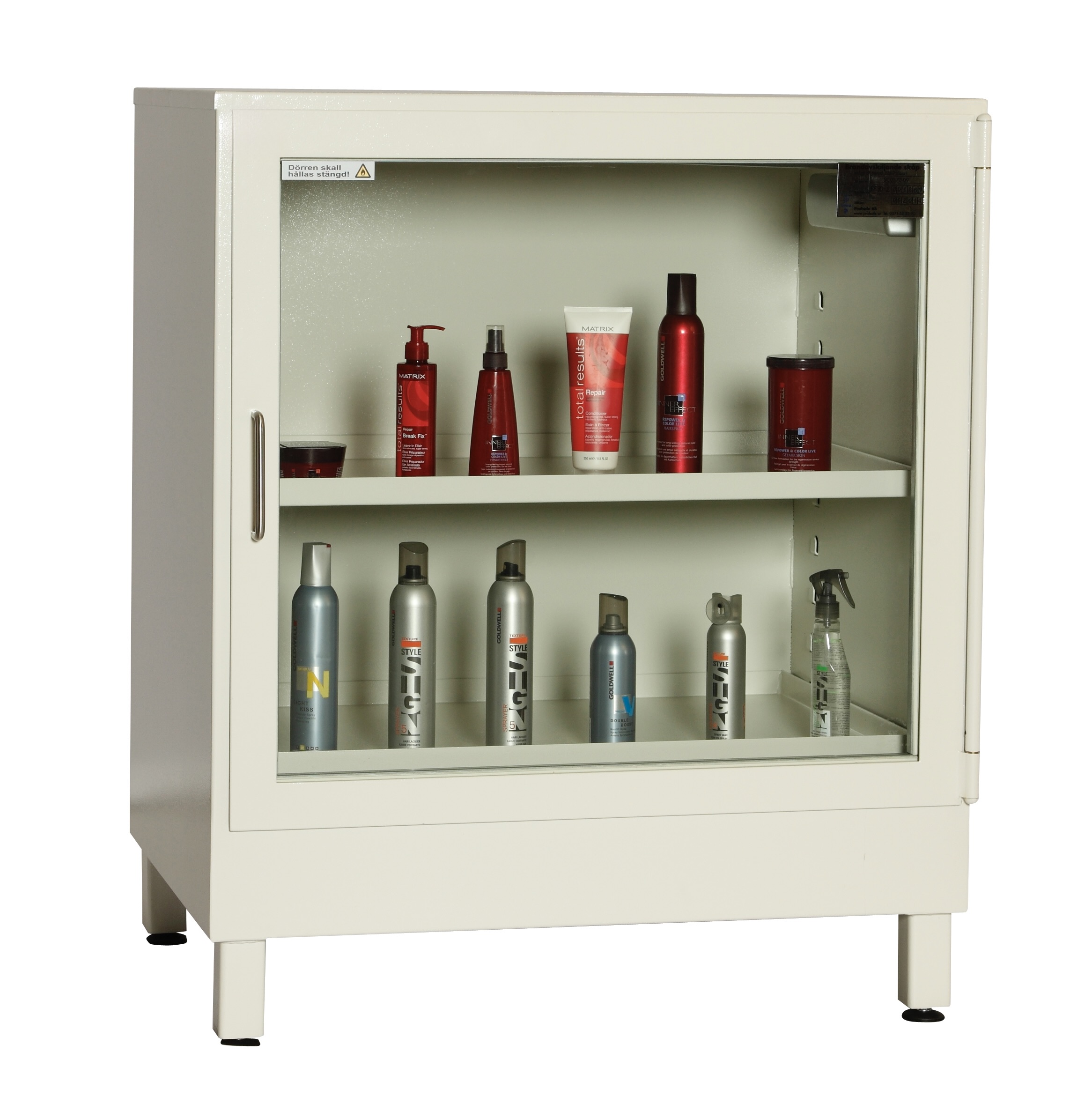 Brandavskiljande skåp (Version 6) för brandfarliga varor och aerosoler i försäljningslokaler mm. Skåpen är godkända och P-märkta.
