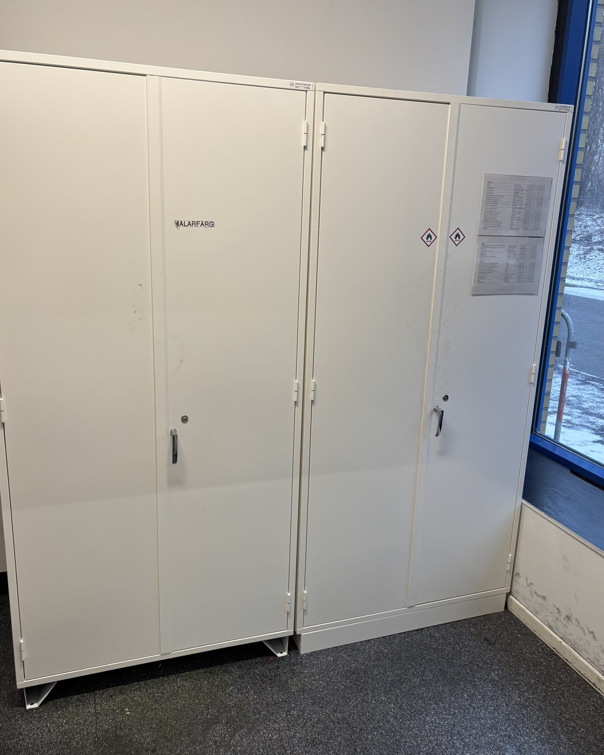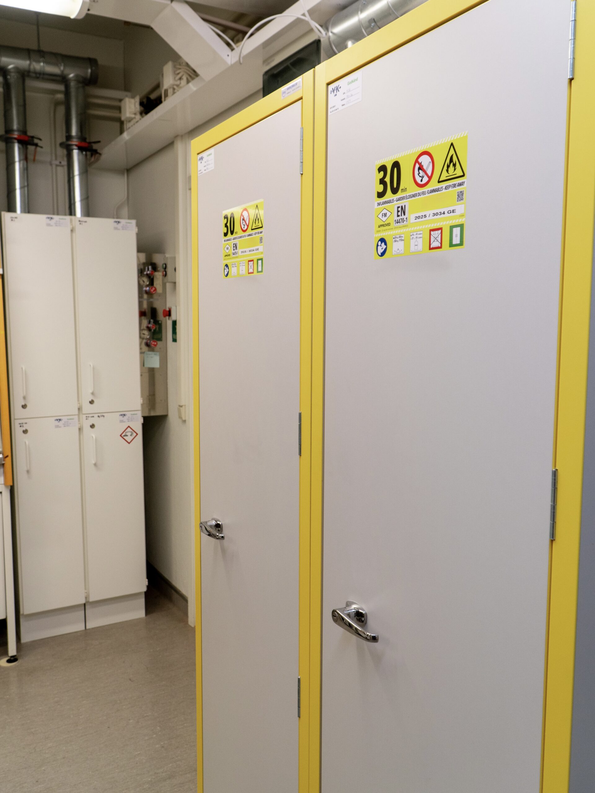 För de brandfarliga ämnena var vårt brandklassade kemikalieskåp F30KEM4 en optimal lösning för Chalmers behov