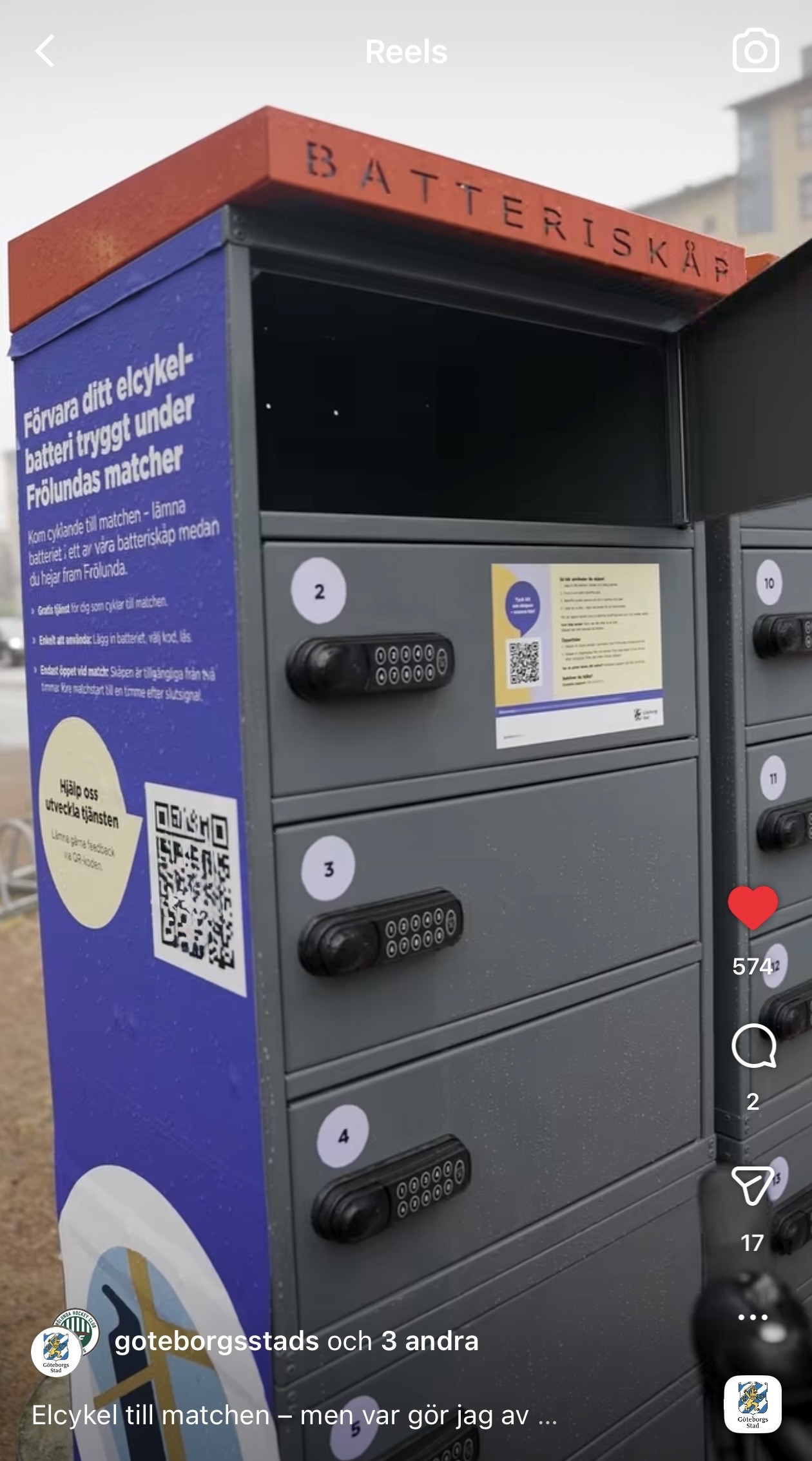Till Göteborgs Stad levererade vi laddskåp för elcykelbatterier utomhus. Batteriskåpen används av Frölunda HC:s matchbesökare, eftersom elcykelbatterier inte får tas in i Scandinavium.