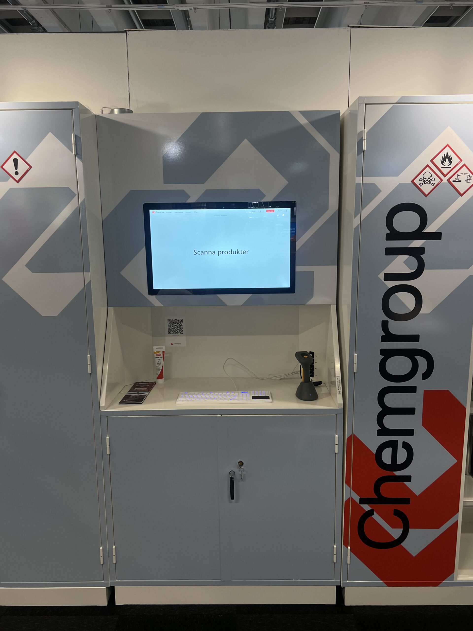 Brandskåpet är utrustat med vågceller installerade av DIGI SENS, vilka är integrerade mot Ahlsells automatiska inventeringssystem. Lösningen möjliggör placering av skåpet direkt ute hos slutkund med kontinuerlig övervakning av kemikalieförbrukning.